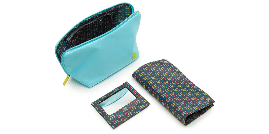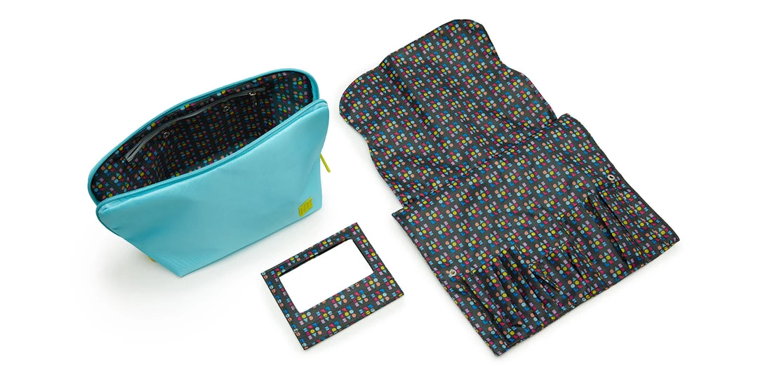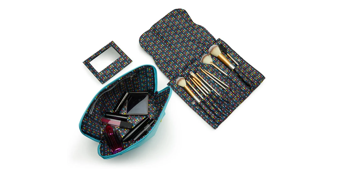 Remix your beauty routine with this Large Cosmetic Pouch. With spacious beauty storage, a removable holder for multiple brushes and a detachable mirror, youāll be moving to your own beat.