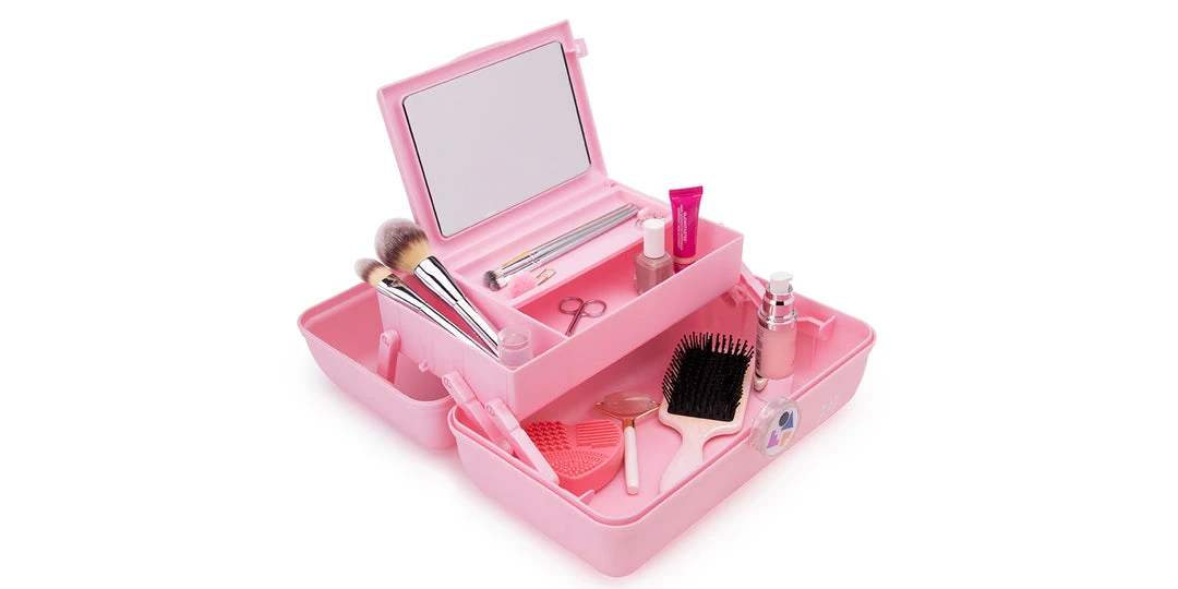 With bold colors and a little extra sparkle, you’ll always be ready to organize and shine. This On-The-Go Girl™ features an auto-open tray with flip lid and mirror, spacious interior storage, and a secure latch so your beauty routine is right on.