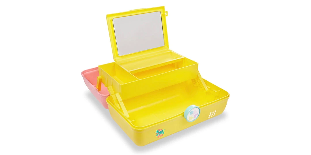 Take the tempo up to ‘87 with this remixed On-The-Go Girl™ beauty box. With classic features like an auto-open tray, roomy cosmetic storage, and a mirror in the lid, you’ll always be ready to glow for it.