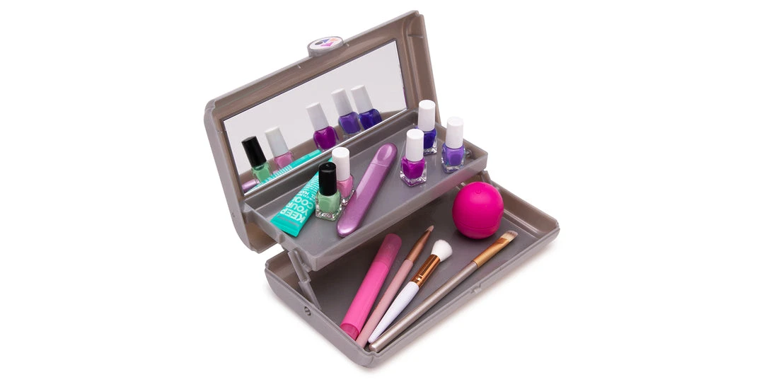 Take it to the dance floor sunrise to sunset with this touch-up tote! With a large fashion mirror, auto-open tray, and snap-tight lid, the Take It™ reminds you you’re worth organizing. Can you dig it?
