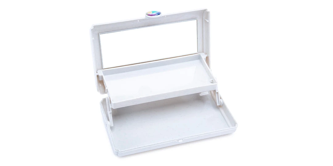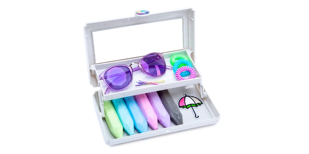 Take it to the ladies’ room. Take it to the gym. Take it to school in your backpack. The Shooting Star Take It makeup carrying case is just the right size for touch-ups when you need to add a little more glitter to your glam. A snap-tight lid keeps the auto-open tray and large fashion mirror inside secure, so your belongings are safe to travel.