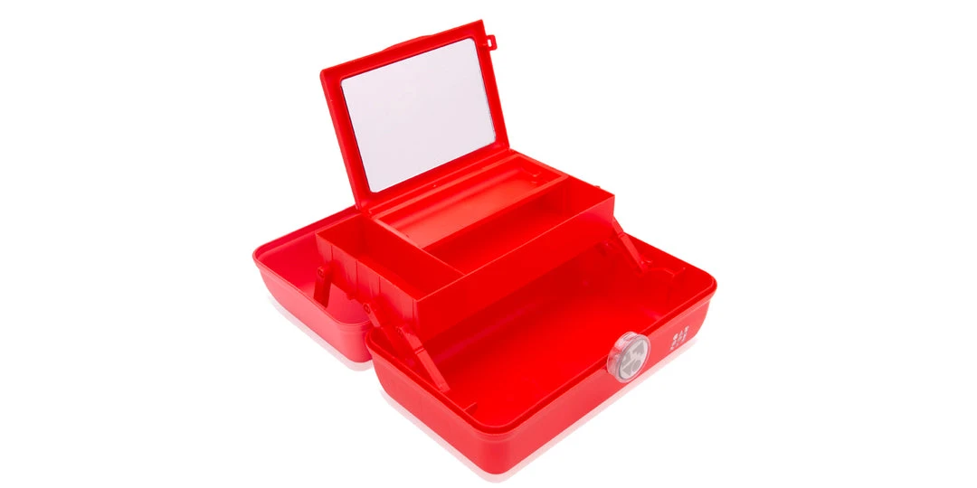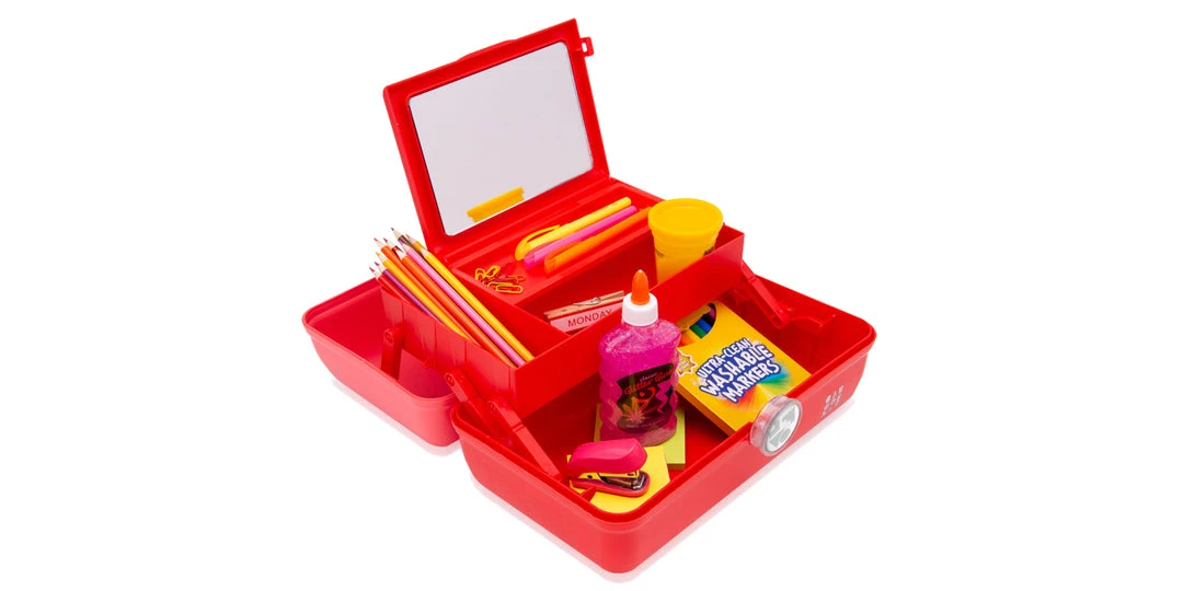 With bold colors and a little extra sparkle, you’ll always be ready to organize and shine. This On-The-Go Girl™ features an auto-open tray with flip lid and mirror, spacious interior storage, and a secure latch so your beauty routine is right on.