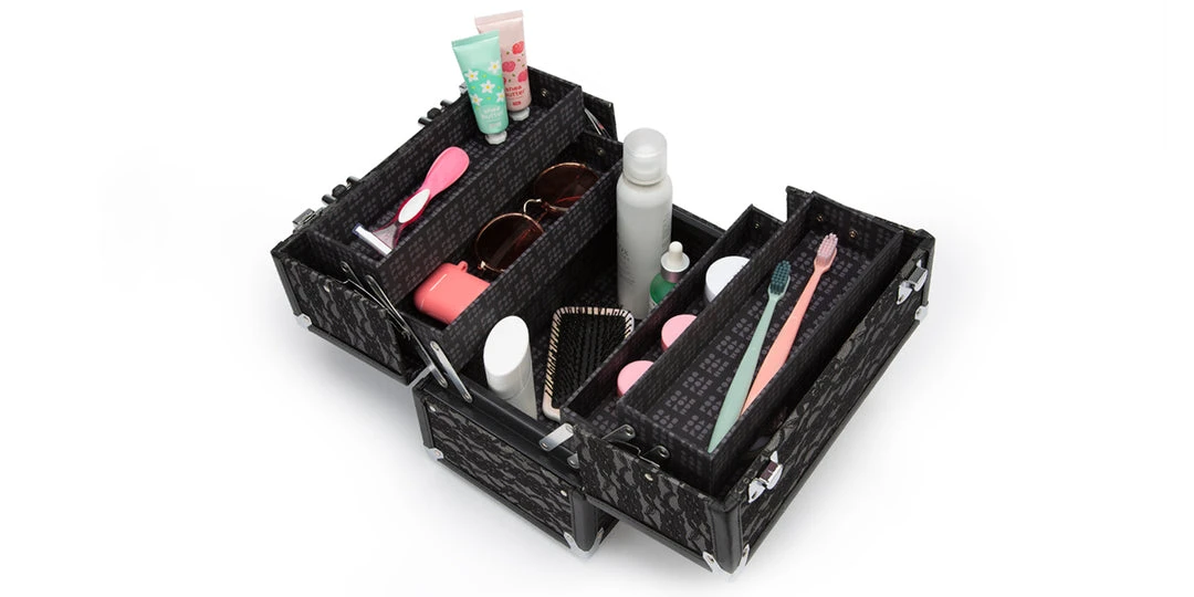 Makeover? Like YOU need it! But if you want to help out some members of your squad, you’ll need this train case. Four large auto-open trays hold all the tools so you can work your magic, while two locking latches with keys protect your secrets.