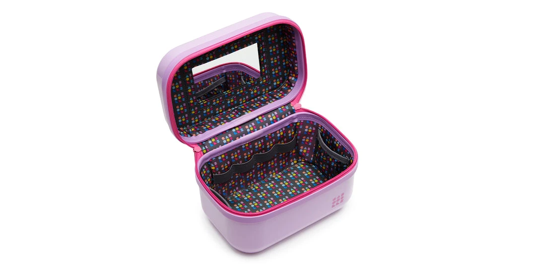 Call her the versatile Voyager™ because she can be ready for travel in a hot minute. This case mixes one part structured train case with one part beauty bag and serves it all with a dash of fun and an easy-carrying handle so getting ready feels like a vacation. She’s ready to glow when you are!
