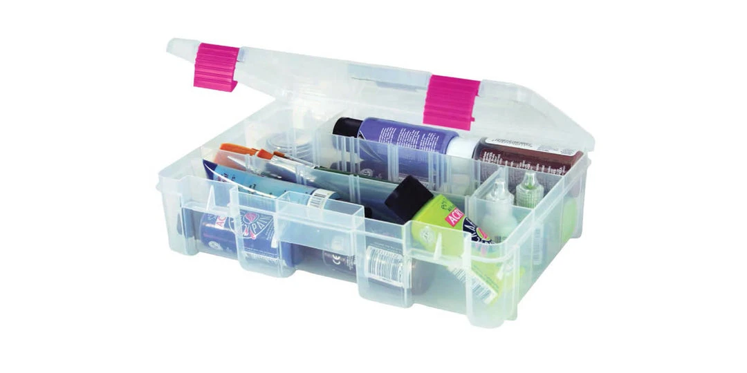 The deepest utility box in our crafting collection, this box stores items that can be tough to find a home for. The Large Extra-Deep Utility Organizer customizes up to 15 interior compartments. Whatever you place inside, you’ll be able to easily find through the clear lid. Use this craft box for any project!