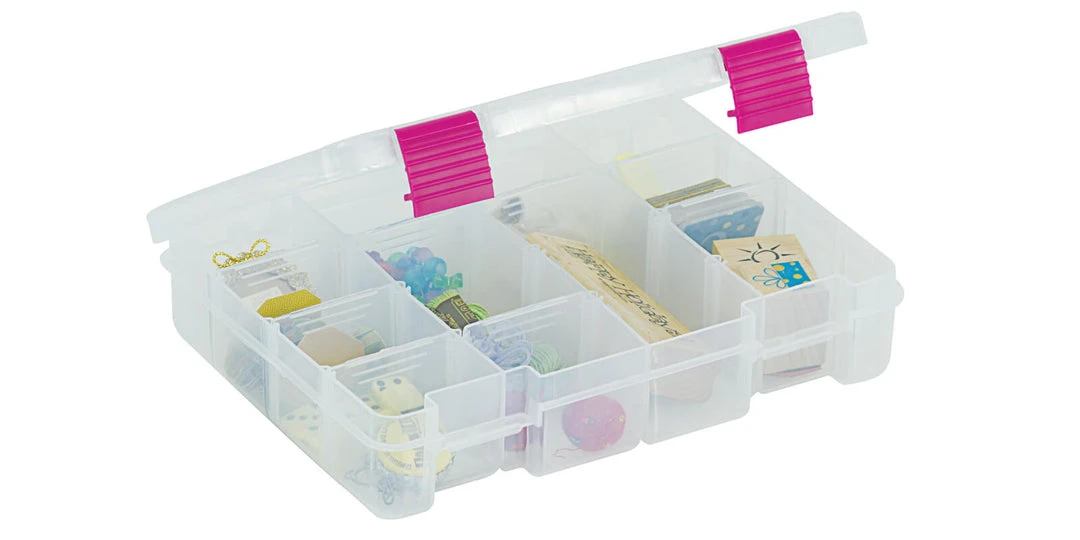 Not even a speck of glitter out of place! The Non-Migrating Utility includes adjustable dividers that secure into grooved sections to create 4-16 non-migrating compartments. Flip it, tip it, shake it – but inside everything will stay just where you left it. Great storage for glitter or other craft projects with messy, hard-to-store supplies like sand, beads, rhinestones and more.