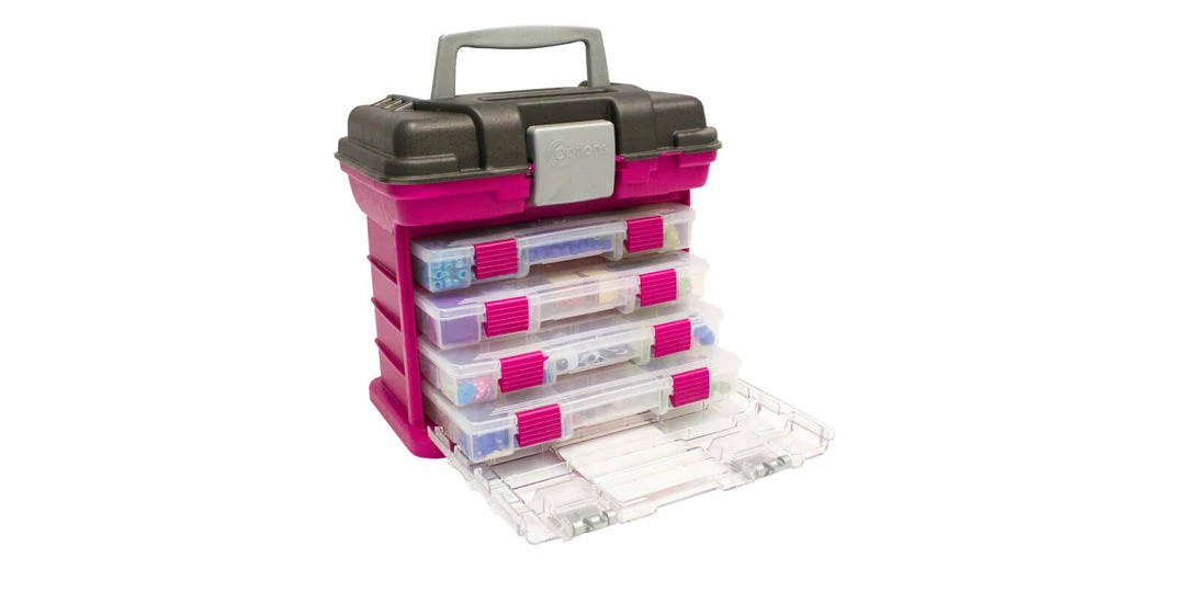 Meet our most popular storage for crafts! Specially designed with multiple drawers that securely snap shut, the Small Grab N’ Go Rack System includes multiple pull-out craft boxes and spacious under-the-lid storage. You’ll quickly learn why this craft organizer earned it’s name. So GRAB one N’ GO on to your next craft project!